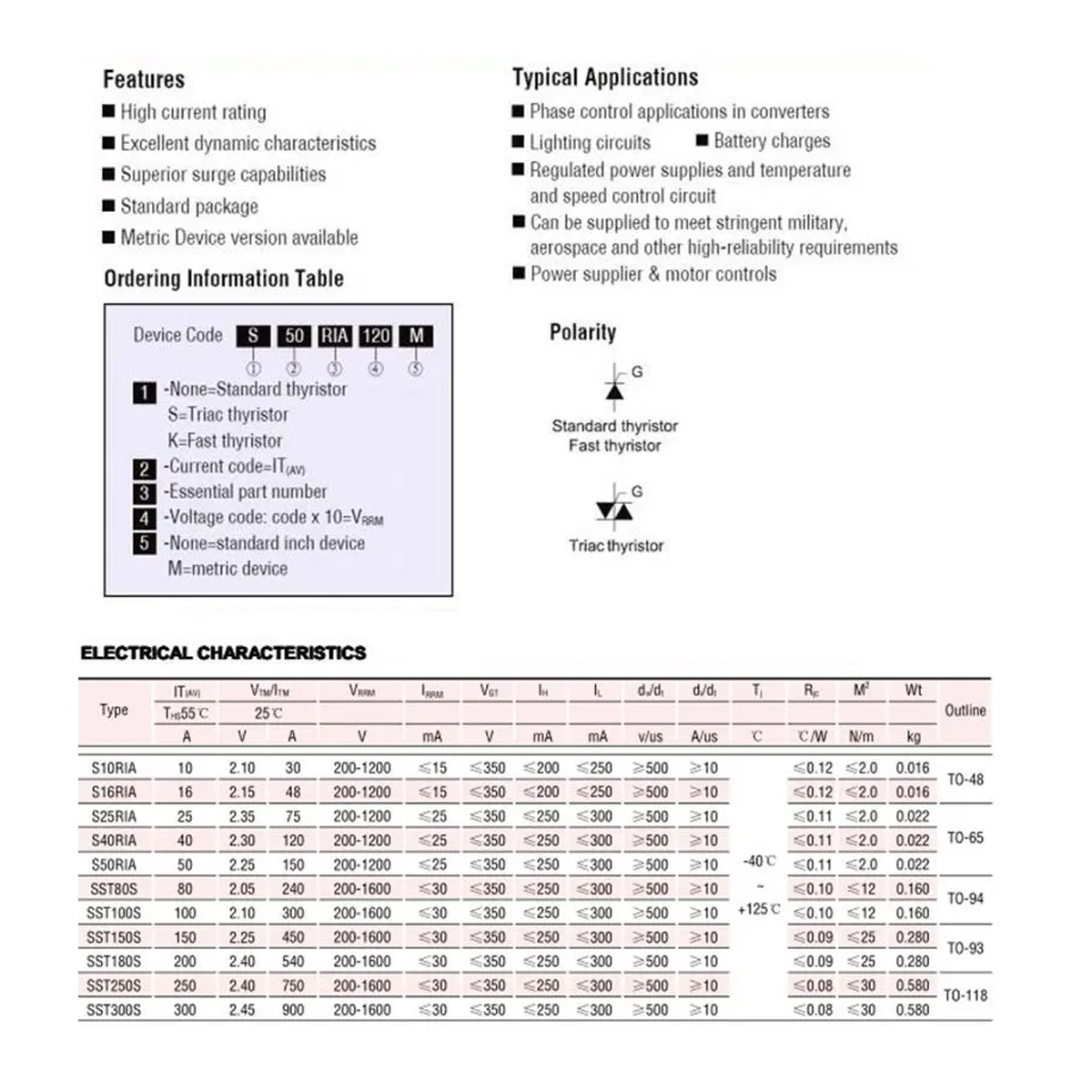 (16RIA120) TIRISTOR SCR 16A 1200V (M6X1)