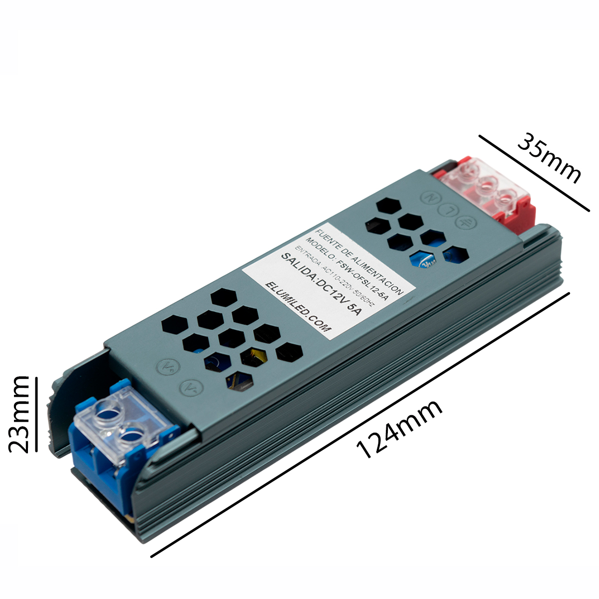 (FSW-OFSL12-5A) Fuente Switching SLIM 12V 5Amp 60Watts (143x35x23)