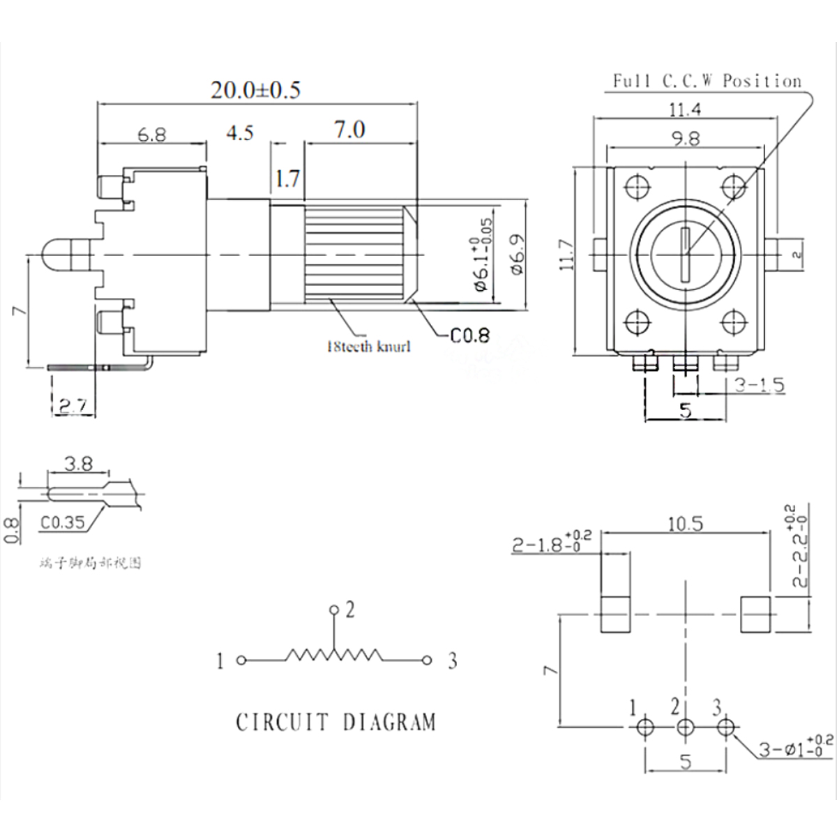 (RV09-V-5K) Potenciometro RV09 Vertical Eje 6x12.5mm 5K Lineal
