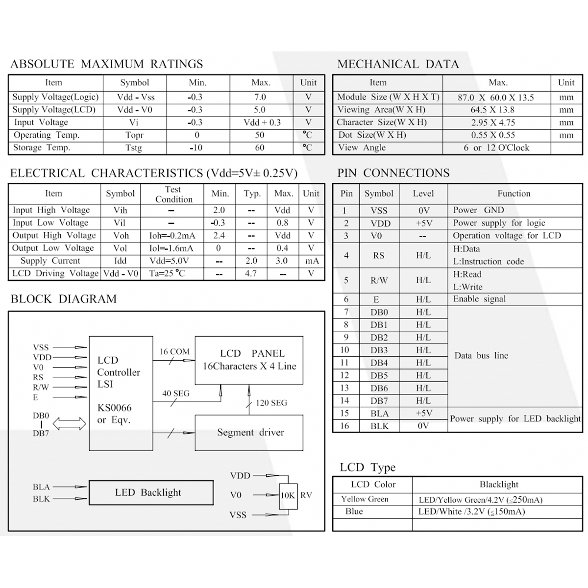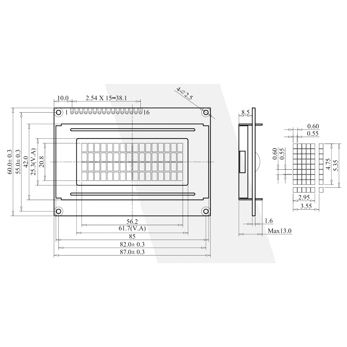 (CCM-1641CSL) Display (16x4) 87x60x13.mm Led Backlight