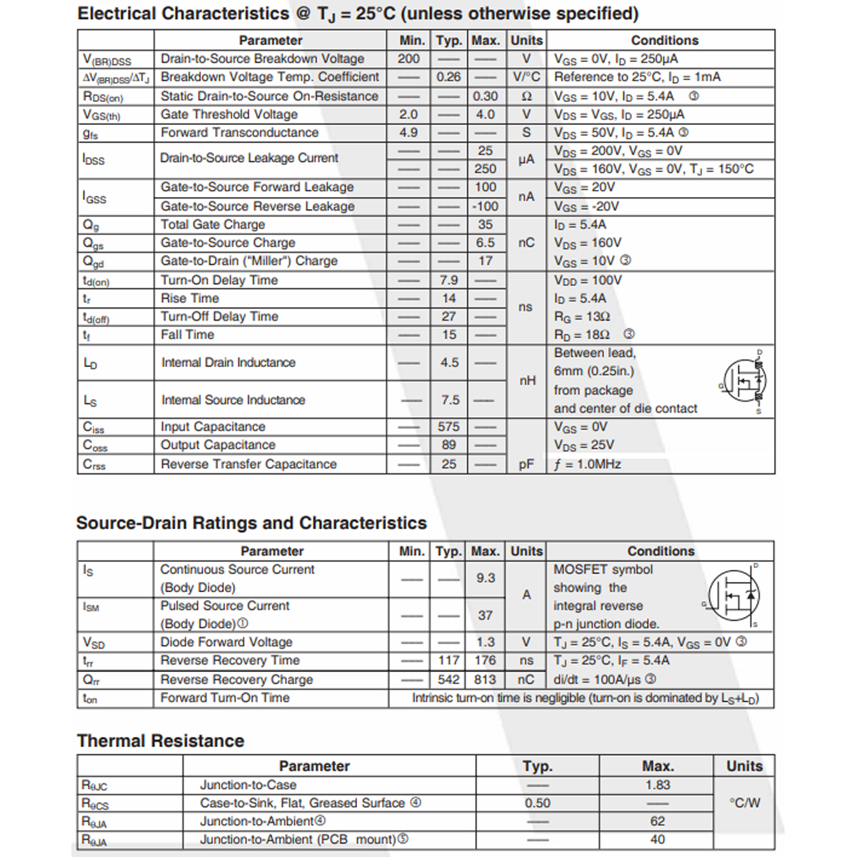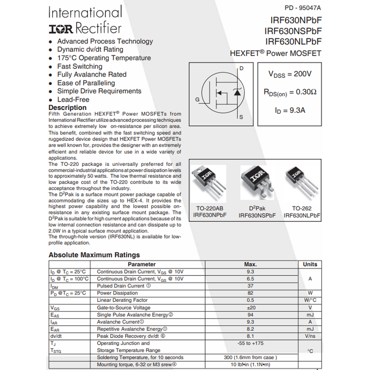 (IRF630N-IR) Transistor MOS-FET N-CH 10A 200V .40 E TO-220