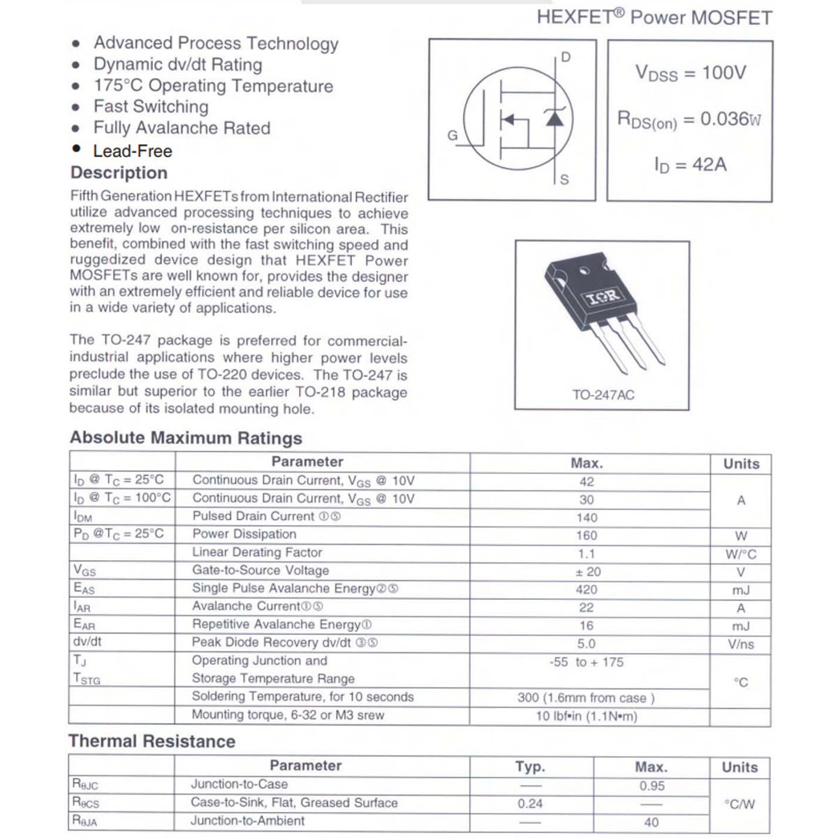 (IRFP150N-IR) Transistor IRFP150NMOS-FET N-CH 40A 100V .055 E TOP-3