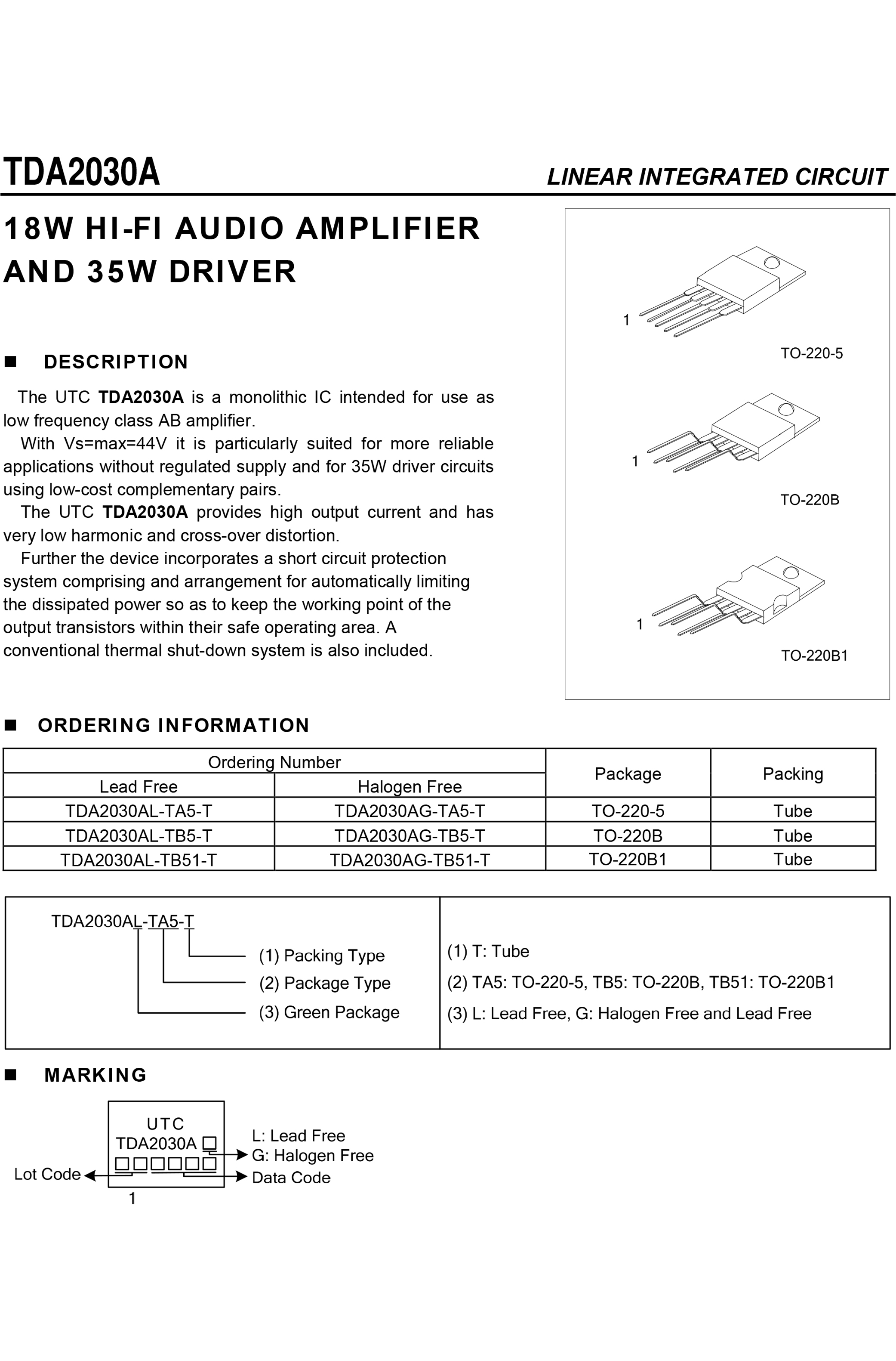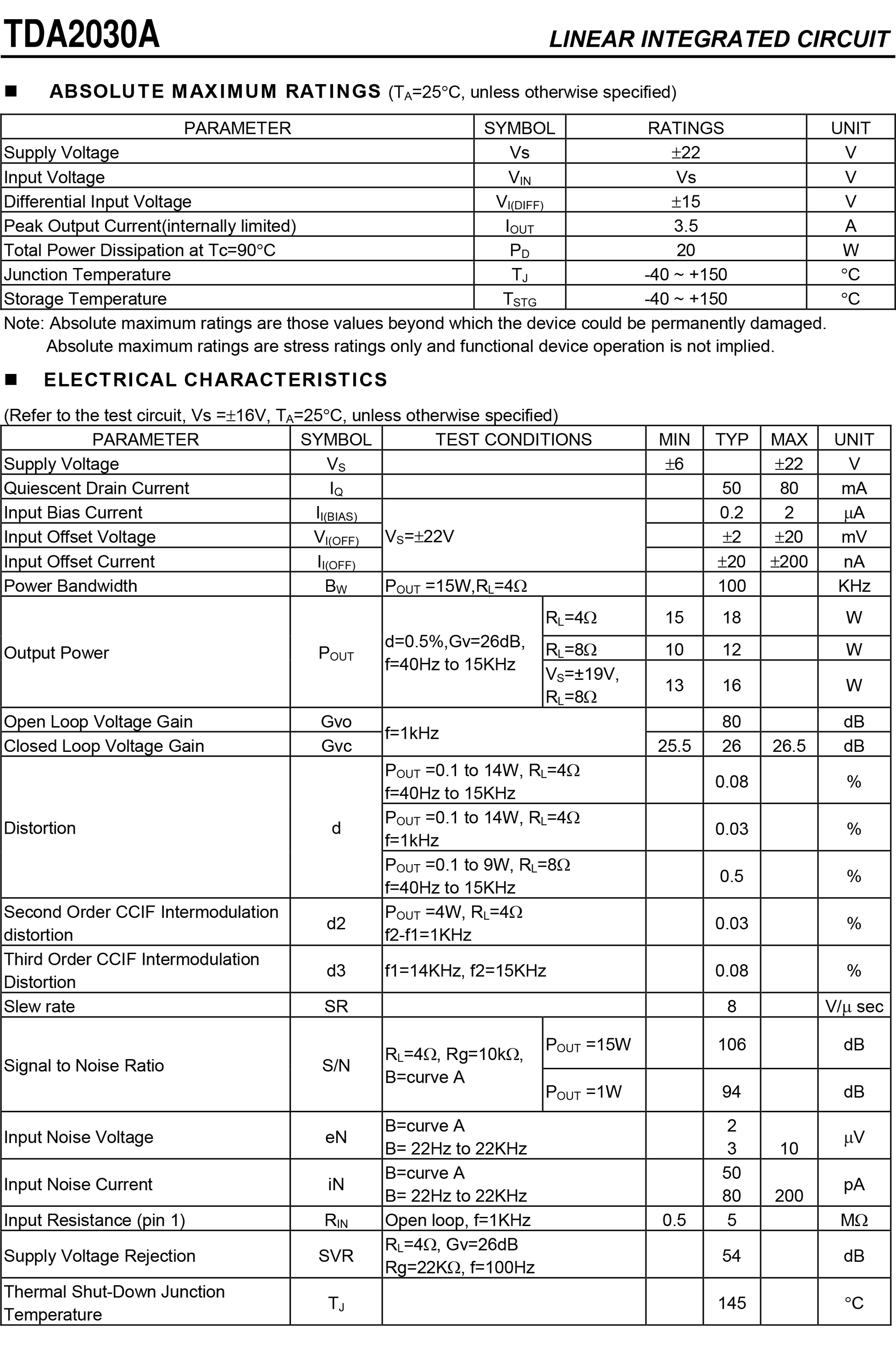 (TDA2030AL) AMPLIFICADOR AUDIO 3.5A 18V, (18W, 14V 4E)