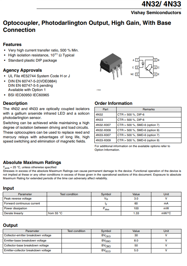 (4N32) OPTO LED-DARL. 5300V CTR= 500(> 50)%