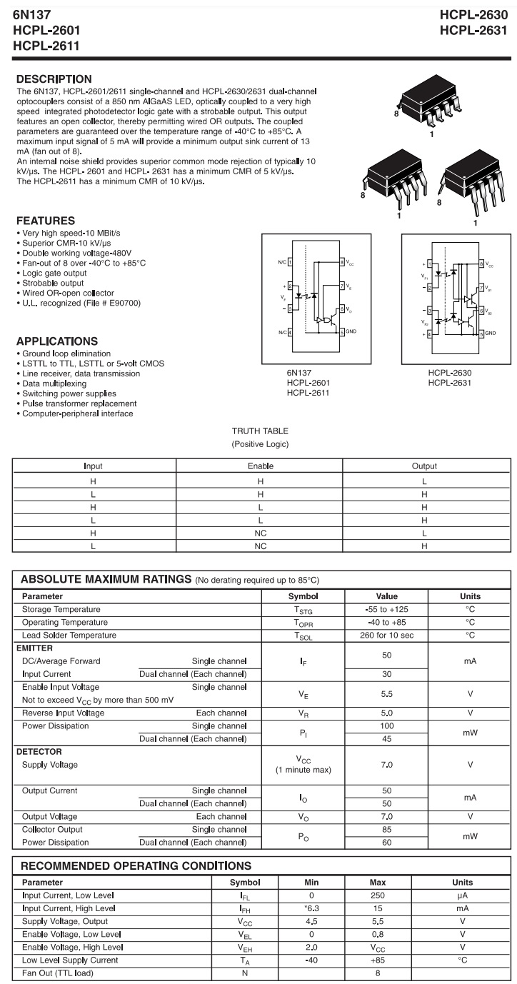 (6N137) OPTO LED-TR V. HIGH SPEED 2500V 8 TTL-LOADS