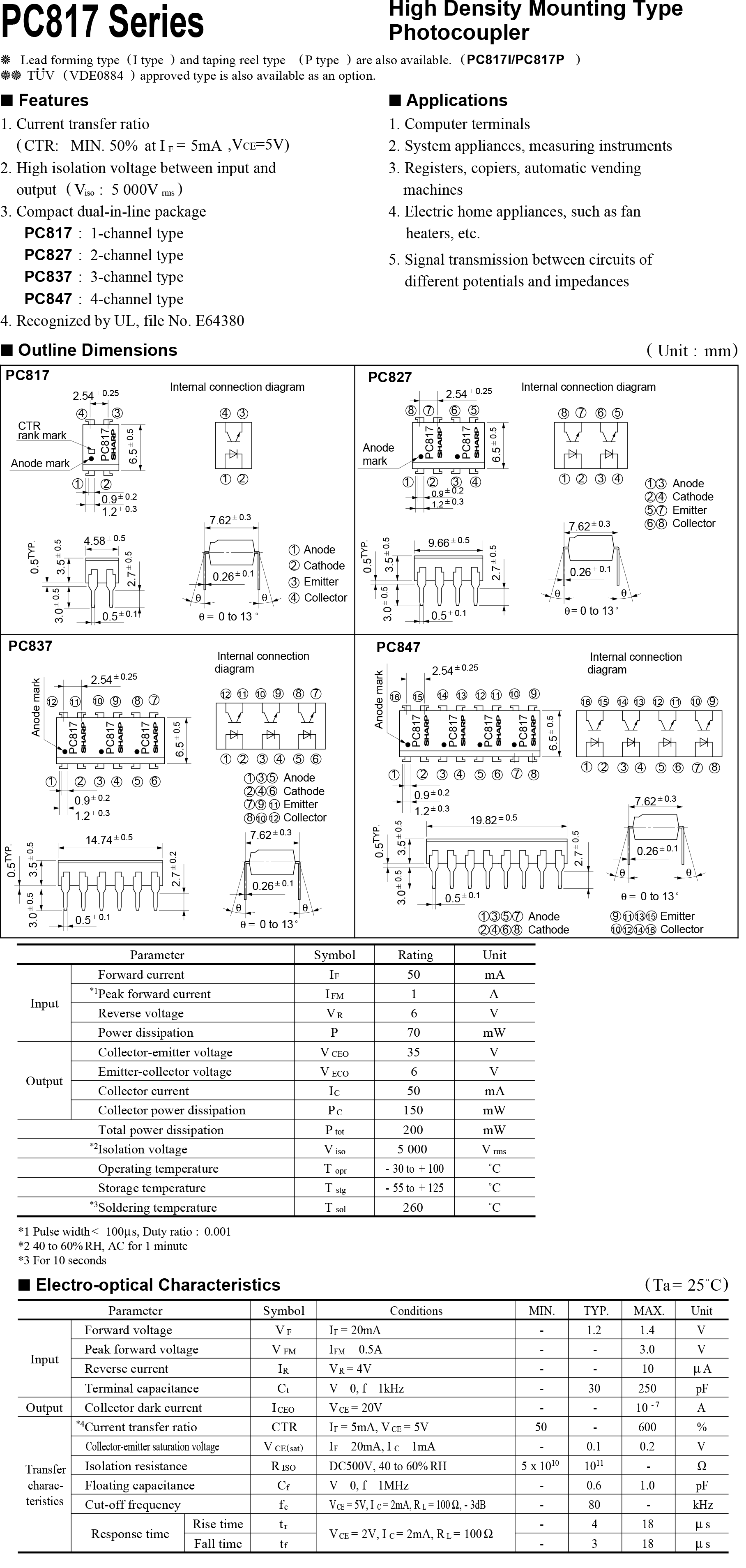(PC817C) OPTO LED-TRANS. 5000V CTR= 600( >300)%