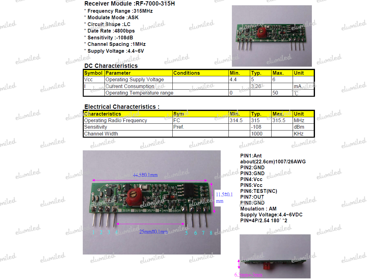 (RF7000-315B) Modulo RECEPTOR RF Trimmer 315.00 Mhz