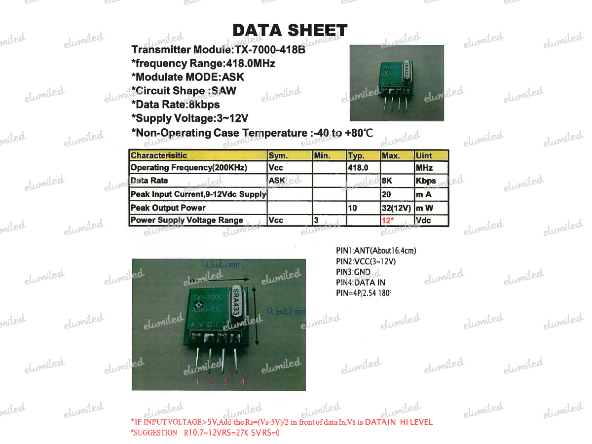 (TX7000-418B) Modulo TRANSMISOR RF SAW 418.00 Mhz