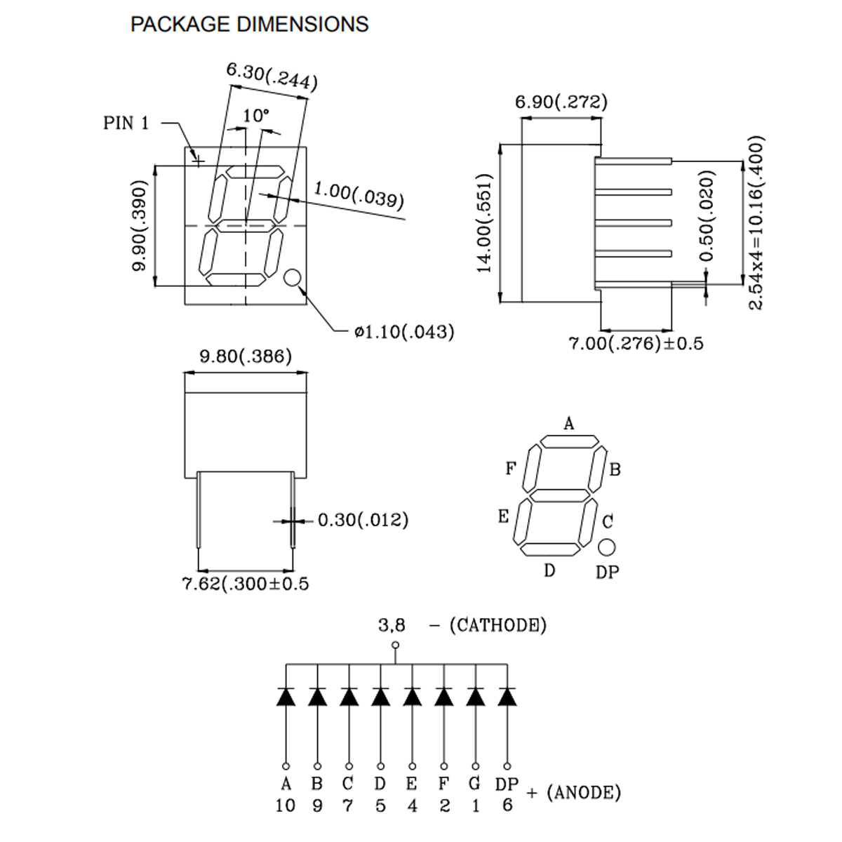(DC391H) DISPLAY 7 Segmentos 0.39" Catodo Comun ROJO 12.86x9.76mm (9.95x6.2mm)