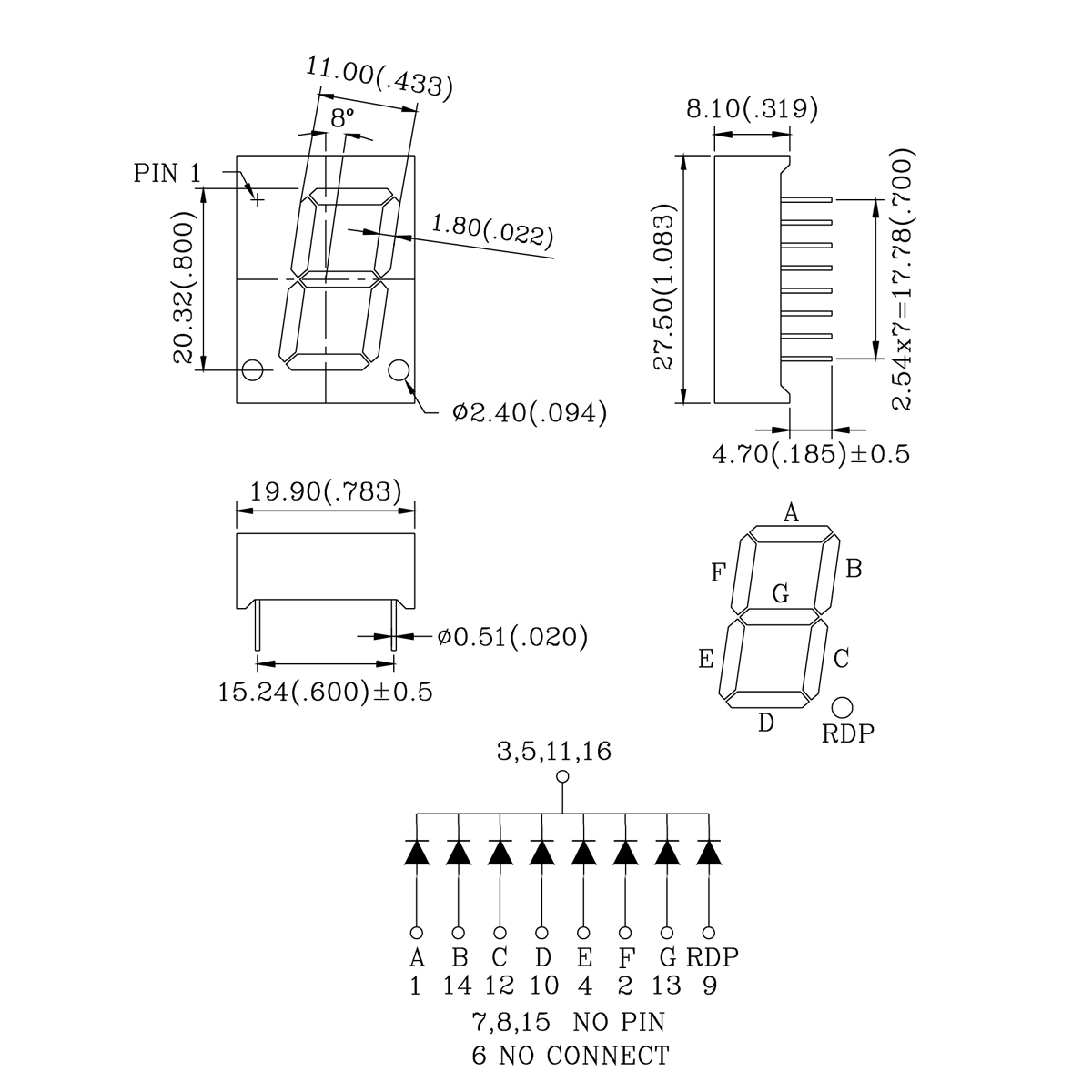 (DC801SR) DISPLAY 0.80" Catodo Comun ROJO SUPER BRILLO 27.5x19.9 (20.3x11mm)