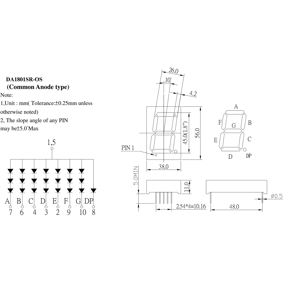 (DA1801SR-OS) Display 7 Segmentos 1.80" Anodo Comun ROJO SUPER BRILLO