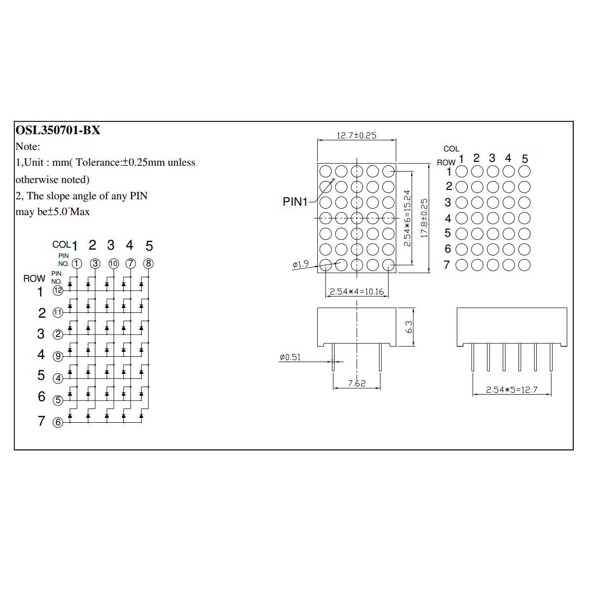 (DC2570E) Display LED Matriz de Puntos 5x7 0.7" Catodo Comun ROJO ALTO BRILLO