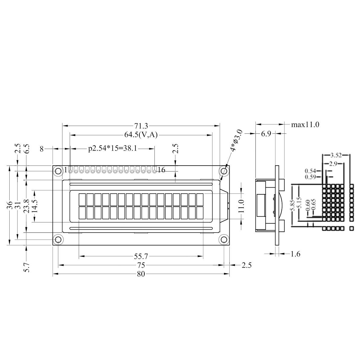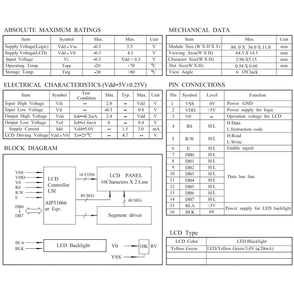(CCM1620CSL) Display (16x2) 80 x 36.0 x 12.7mm, Led Backlight
