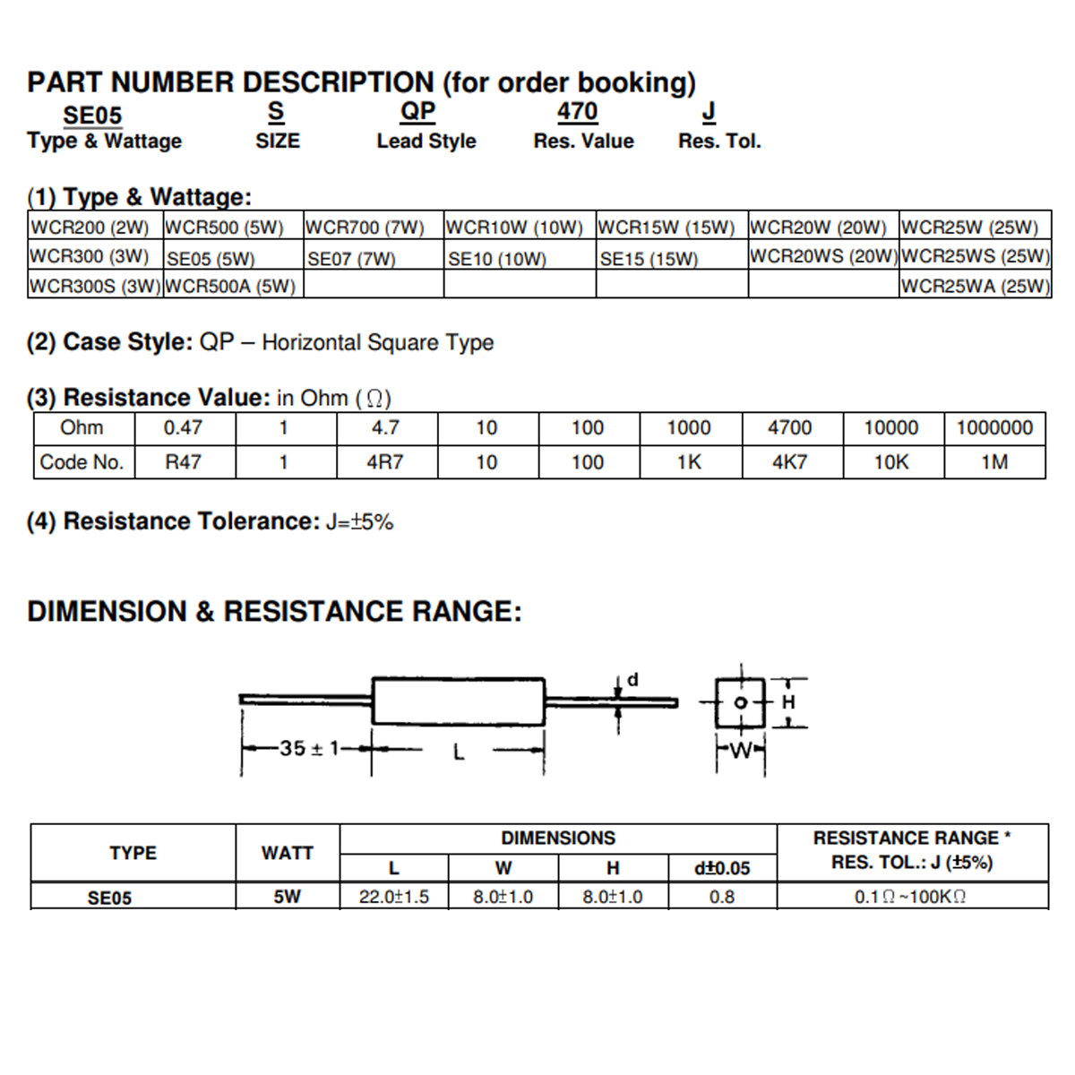 (SE05-22E) Resistencia Alambre Ceramica Cementada 5w 22 Ohm 22R 22E 5%