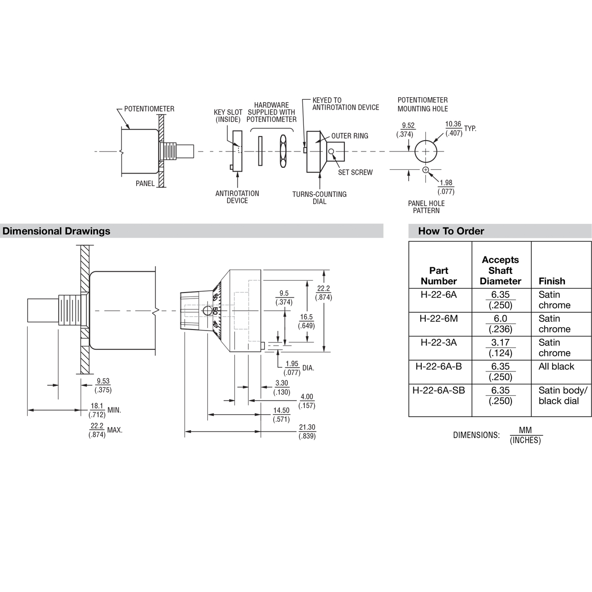 (H22-6A) Dial Cuenta vueltas D. 22mm 0-15 Vtas (Metalico) Bourns para Potenciometros