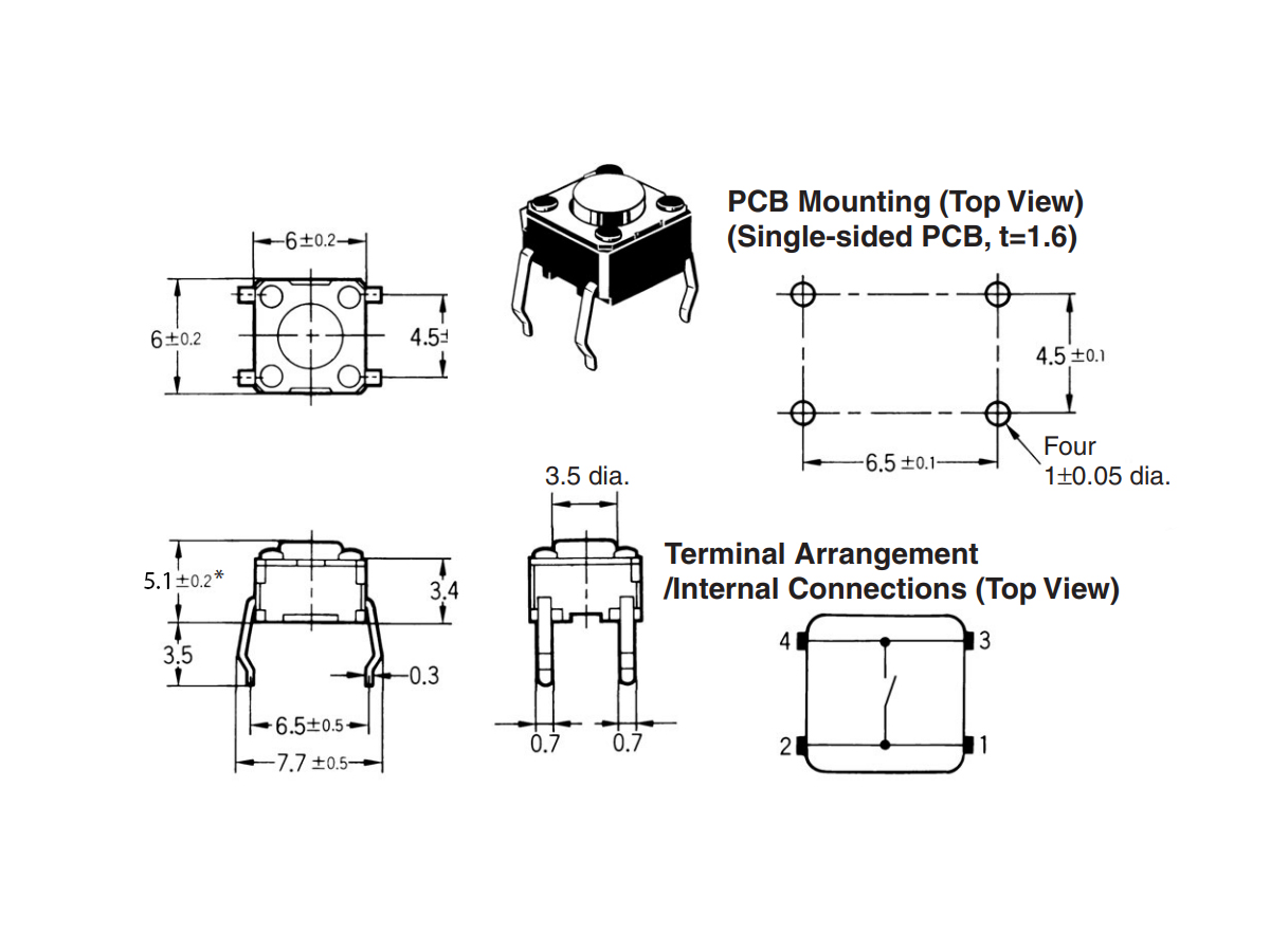 (TS5.1) PULSADOR TACT SWITCH Alto 5.1 mm base 6x6mm(TS062)