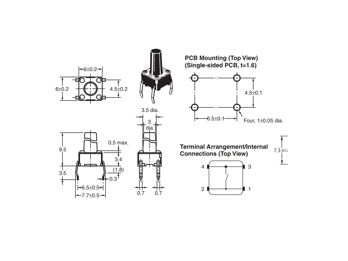(TS9.5) PULSADOR TACT SWITCH 9.5 mm base 6x6mm (TS064)