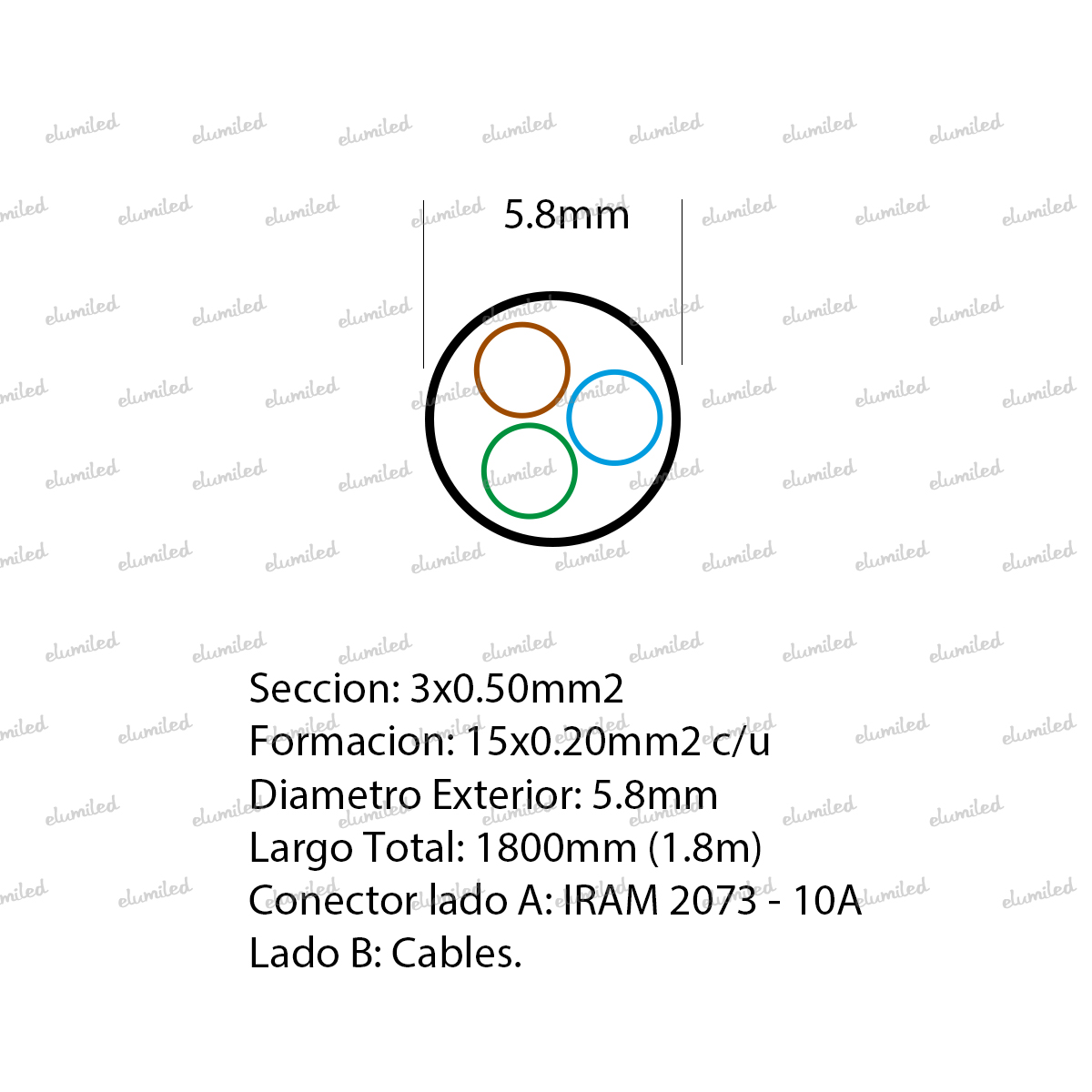 (INT3050-1.8-N) Cable Monoblock (3 x 0.50mm) Largo 1800mm IRAM 2073 NEGRO