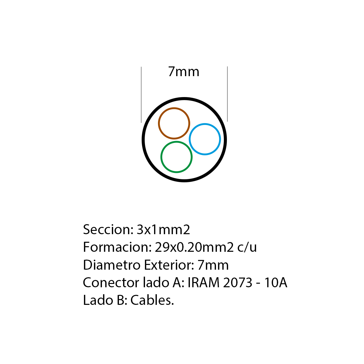 (INT3100-2.5-N) Cable Monoblock (3 x 1.00mm) L=2500mm IRAM 2073 NEGRO