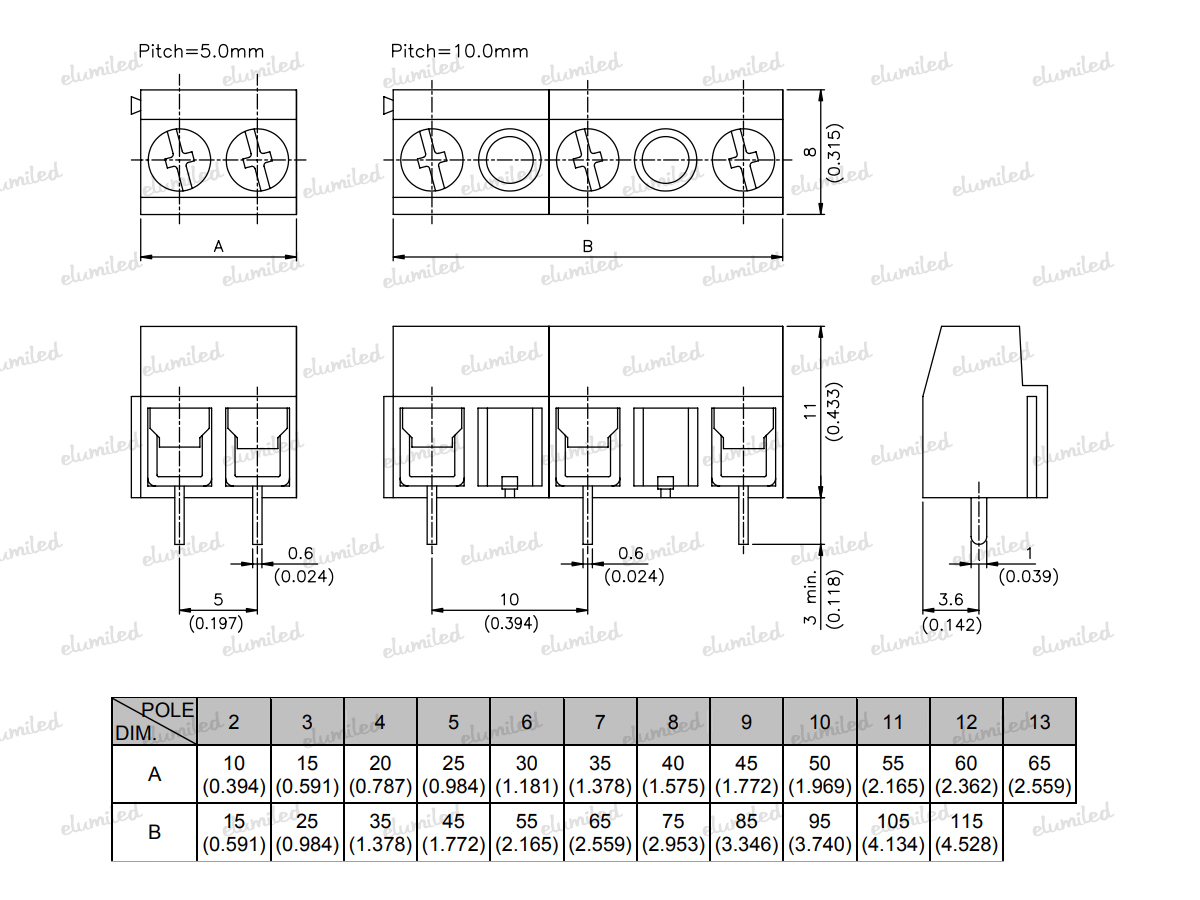 (DG126-2) Bornera 2 Polos Apilable para Circuitos 10A 300VAC 10x11mm AZUL Paso 5mm