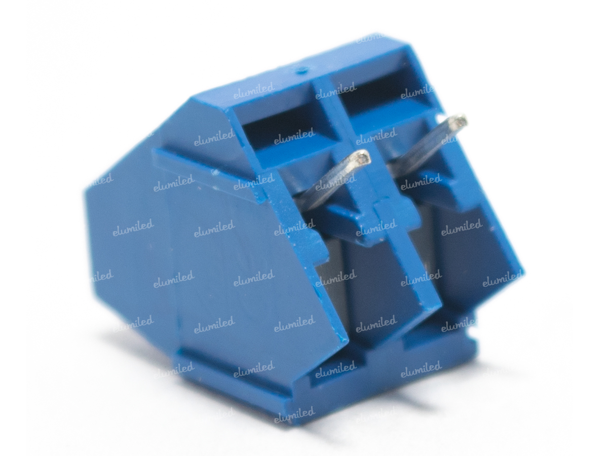 (DG103-2) Bornera 2 Polos Apilable 45 Grados 20A 300 VAC h=15.5mm AZUL Paso 5mm 24-12 AWG