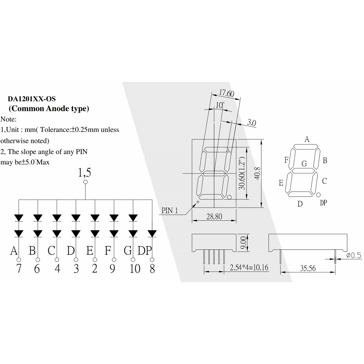 (DA1201SR-OS) DISPLAY 1.20" Anodo Comun ROJO Super BRILLO (OSK11201IRA)