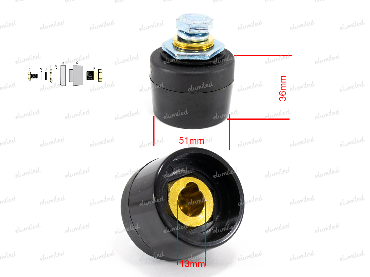 (ZL-PS70-95-N) Conector Hembra Para Soldadora 13mm 70-95mm2 500A Negro