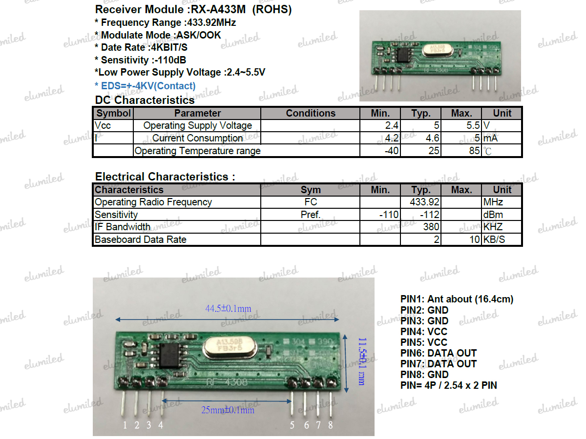 (RX-A433M) Modulo RECEPTOR RF "IC" 433.92 Mhz