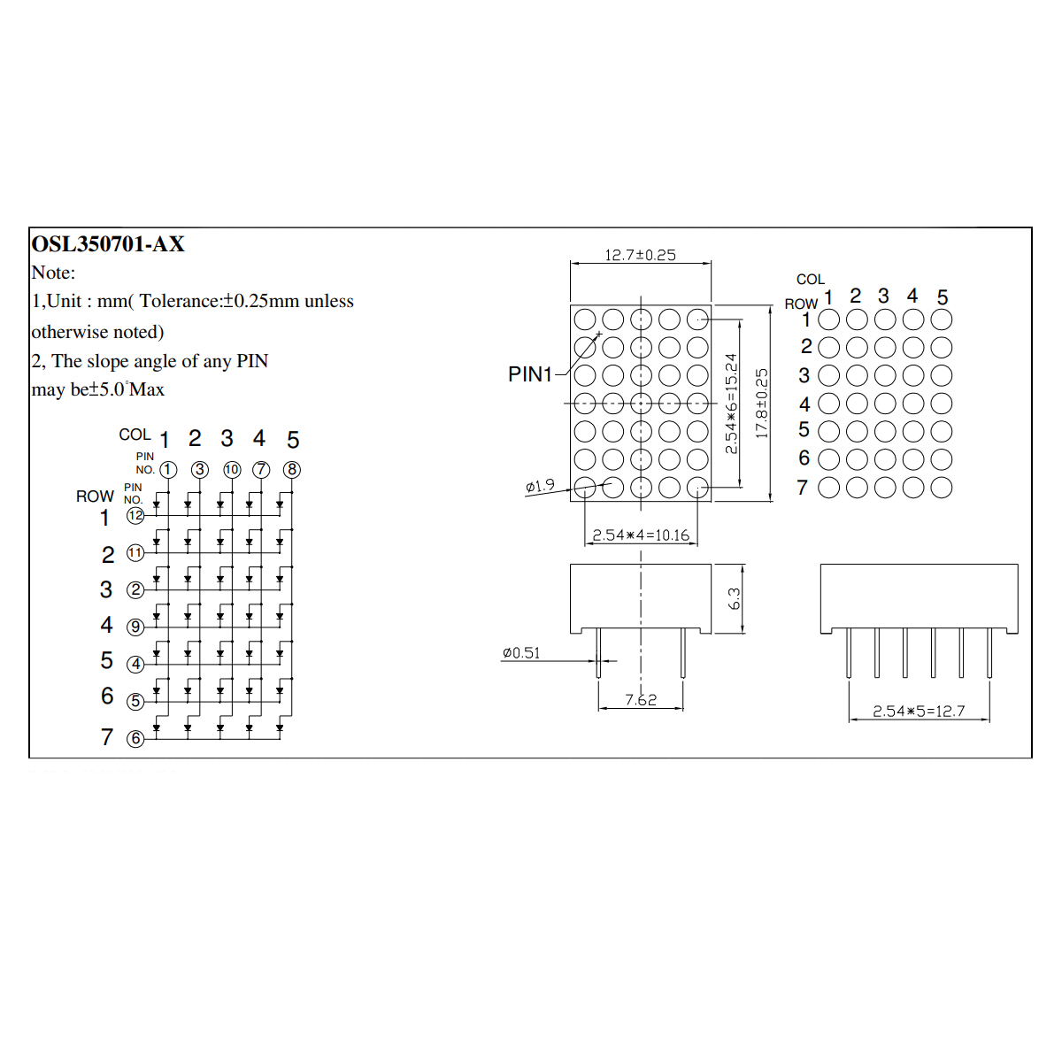(DA2570UB-OS) DISPLAY Matriz De Puntos Azules 0.7" 5x7 Puntos Anodo Comun (OSL350701-AB)