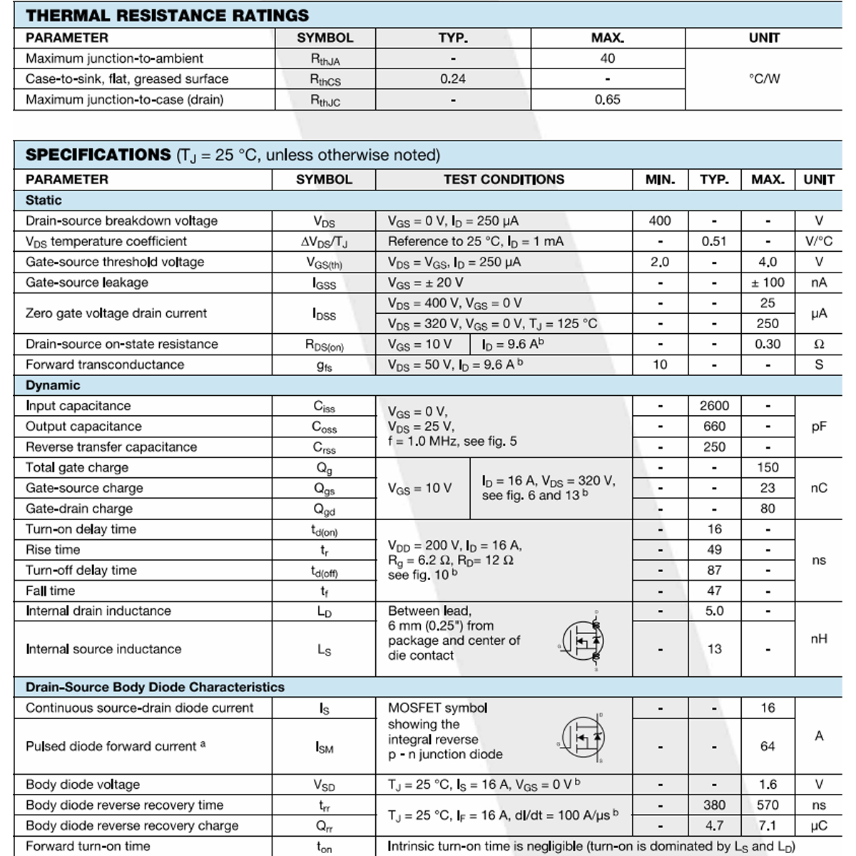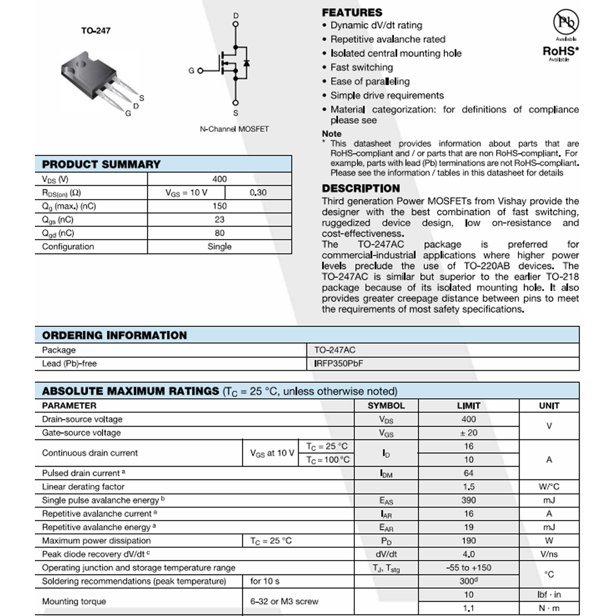 (IRFP350-VHY) Transistor MOS-FET N-CH 16A 400V .30 E TOP-3
