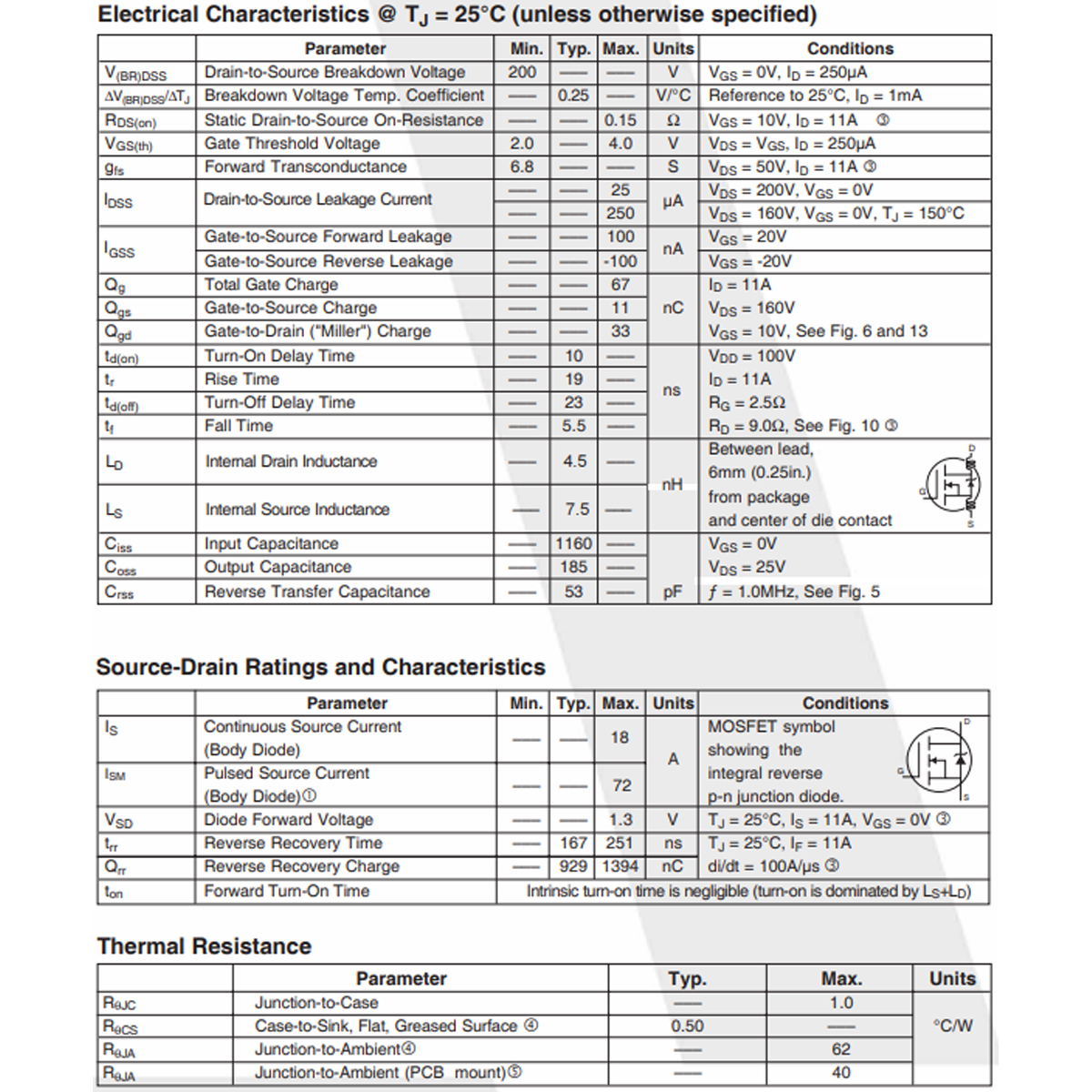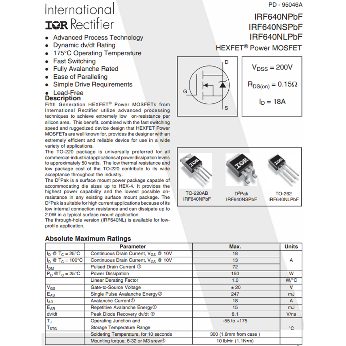 (IRF640NPBF-IR) Transistor IRF640N MOS-FET N-CH 18A 200V .18 E TO-220
