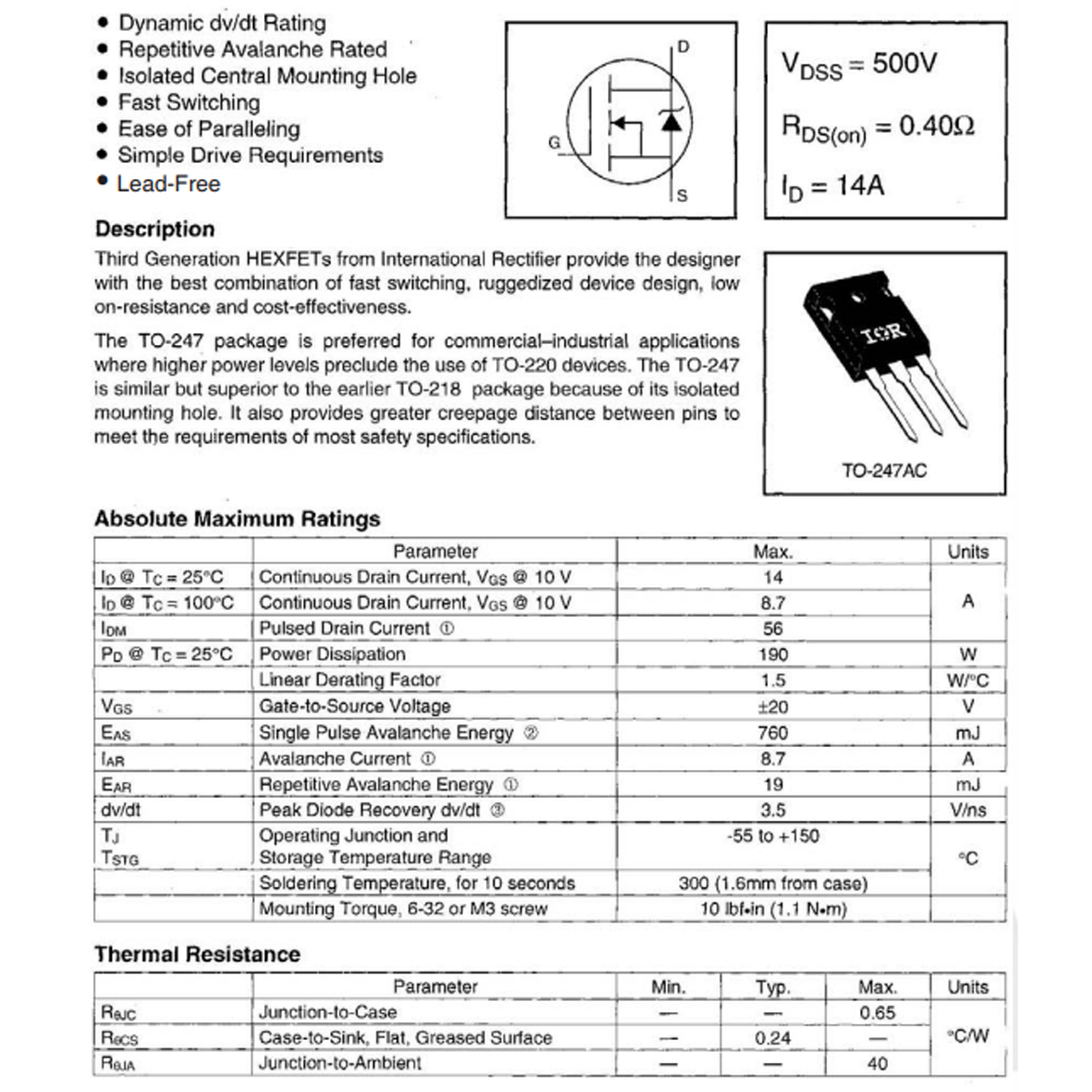 (IRFP450PBF-IR) Transistor MOS-FET N-CH 14A 500V .400 E > IRFP450-IR
