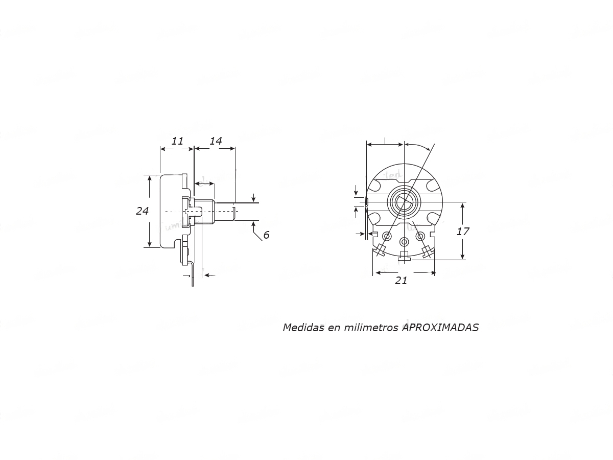 (PLIN20K-15-CI) Potenciometro Carbon 20K Lineal (B) 24mm Eje L=14mm Para Circuito