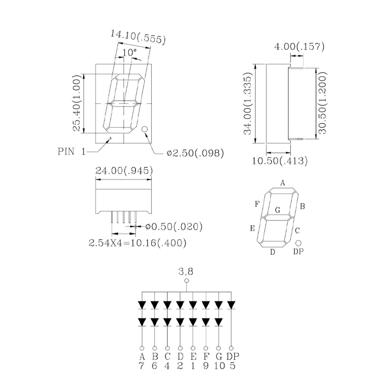(DA1001UB-OS) DISPLAY 1.00" Anodo Comun Azul 22x33mm