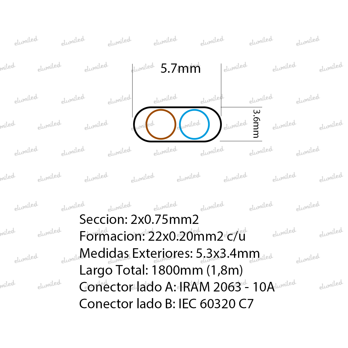 (INT-R8-2075-1.8N) Cable Interlock (2 x 0.75mm) Largo 1.8m IRAM 2063 a Ficha 8 Radio - IRAM