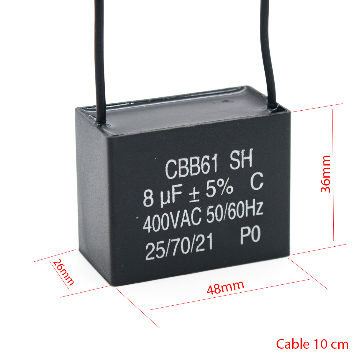 (CBB61-8X400) Capacitor Polipropileno Metalizado 8uF x 400VAC Arranque de Motores