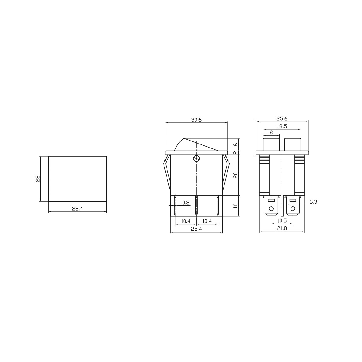 (RS-2102-N) Llave Doble Inversora DPST 6 patas 250 Volts 15a 22x28mm