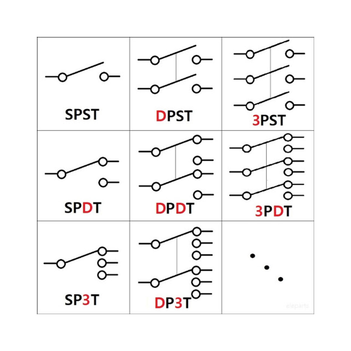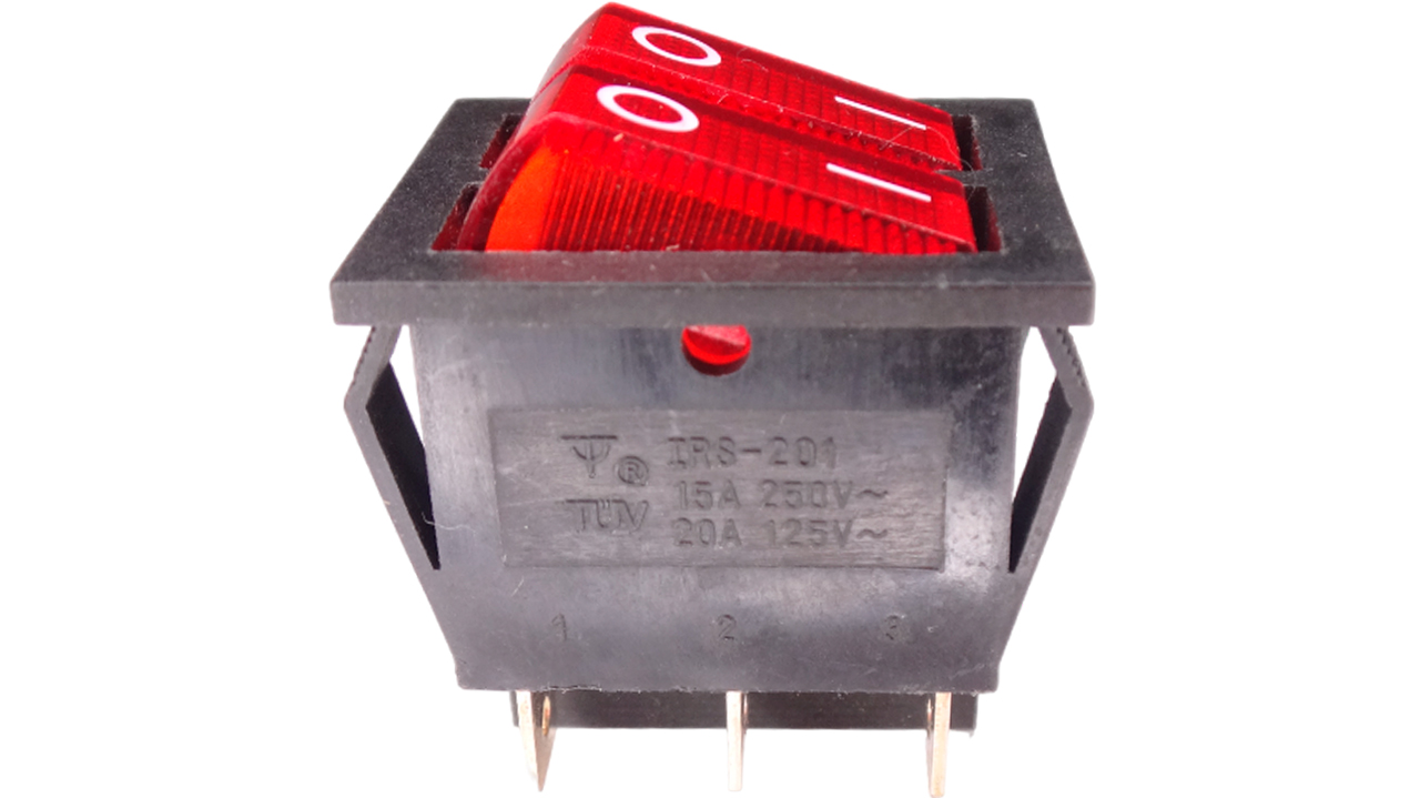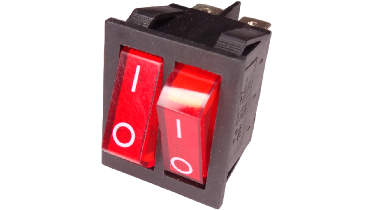 (RS-2102-R) Llave Doble Inversora DPST 6 patas 250 Volts 15a 22x28mm