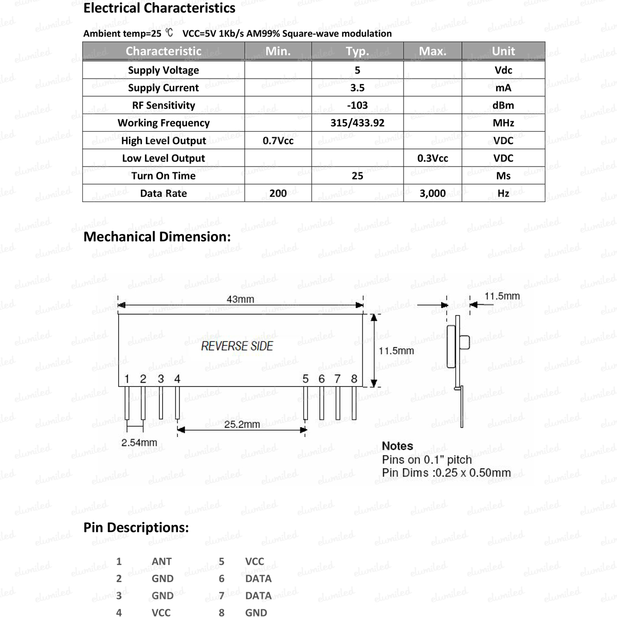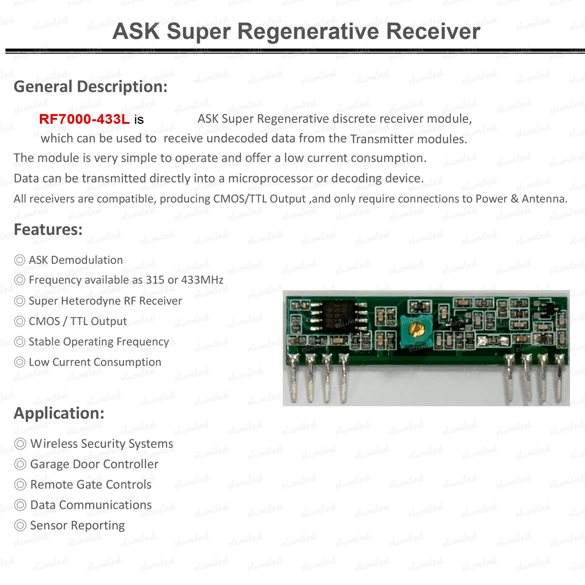 (RF7000-433L) Modulo RECEPTOR RF "Super Regenerativo" 433 Mhz
