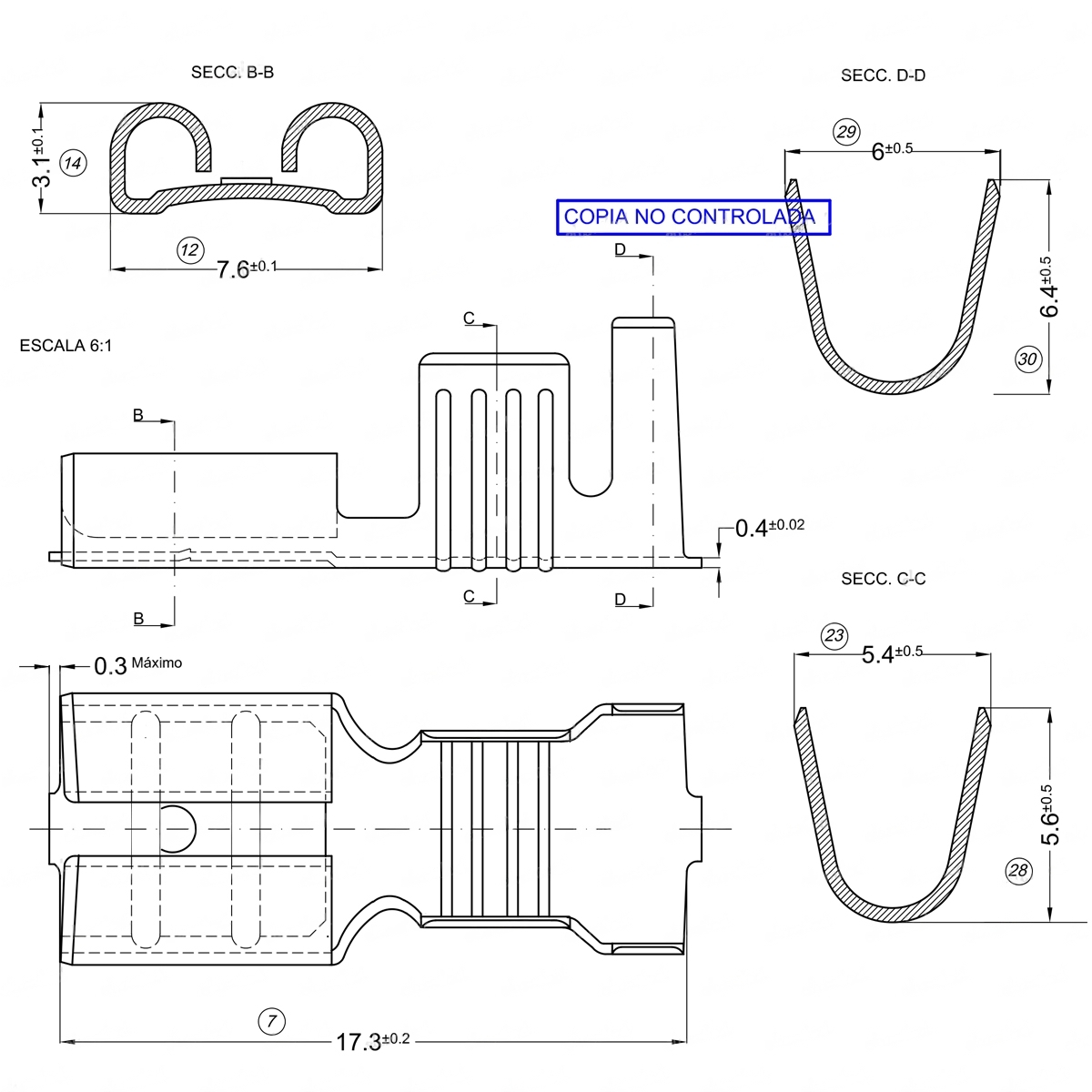 Terminal macho a utilizar: 6.3mm MACHO