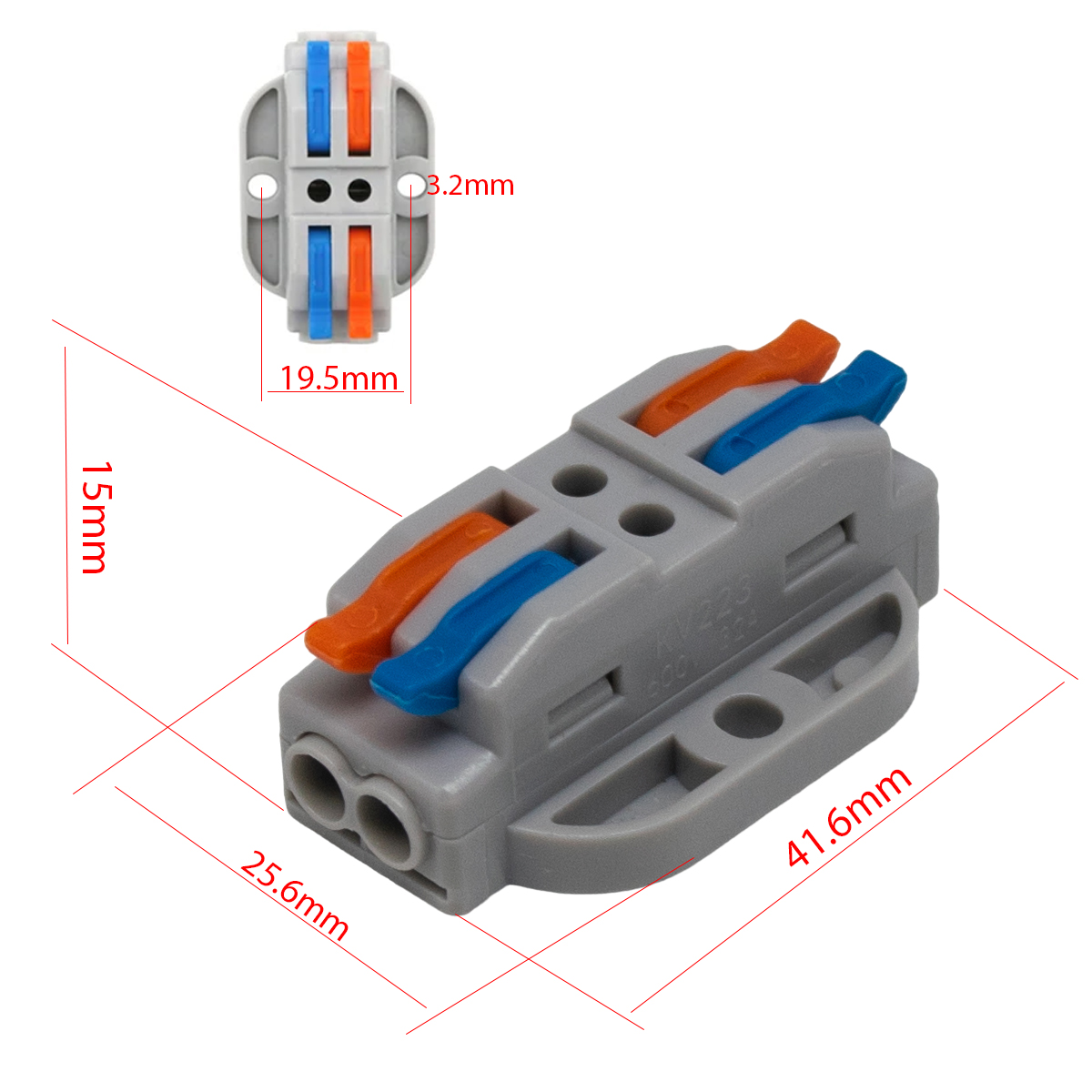 (KV223MC-2P) Empalme Rapido sin tornillos 2 Polos 2 Pin 0.08 a 2.5mm2 (4mm2 unifilar)