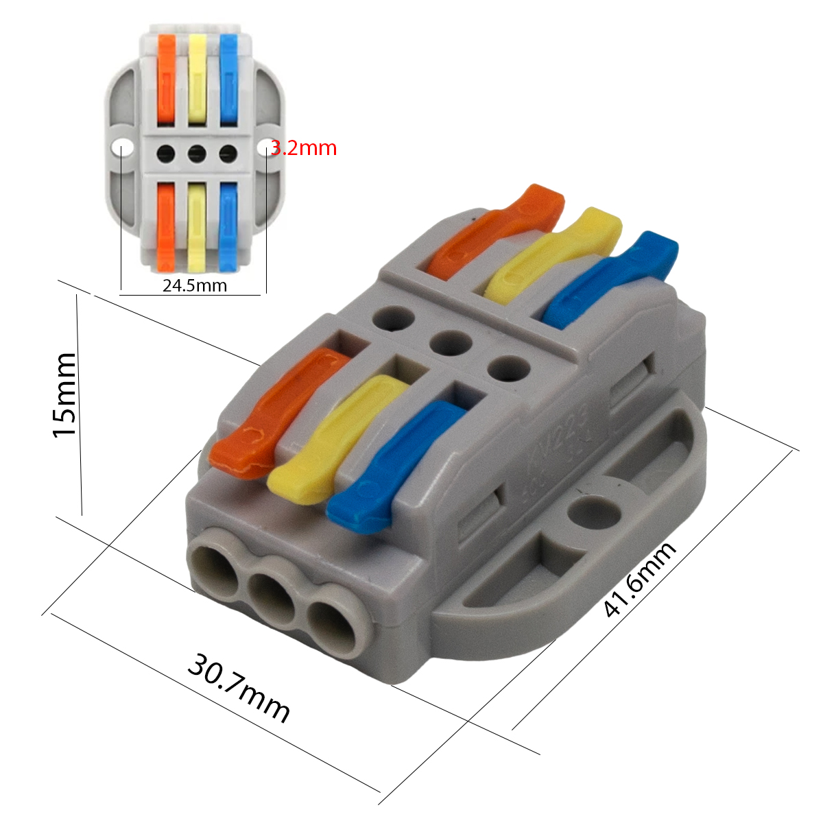 (KV223MC-3P) Empalme Rapido sin tornillos 3 Polos 3 Pin 0.08 a 2.5mm2 (4mm2 unifilar)