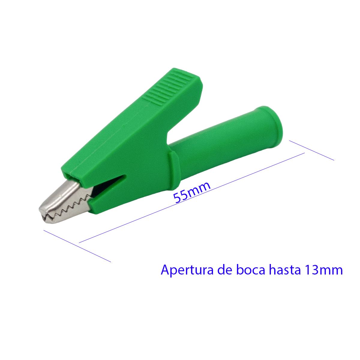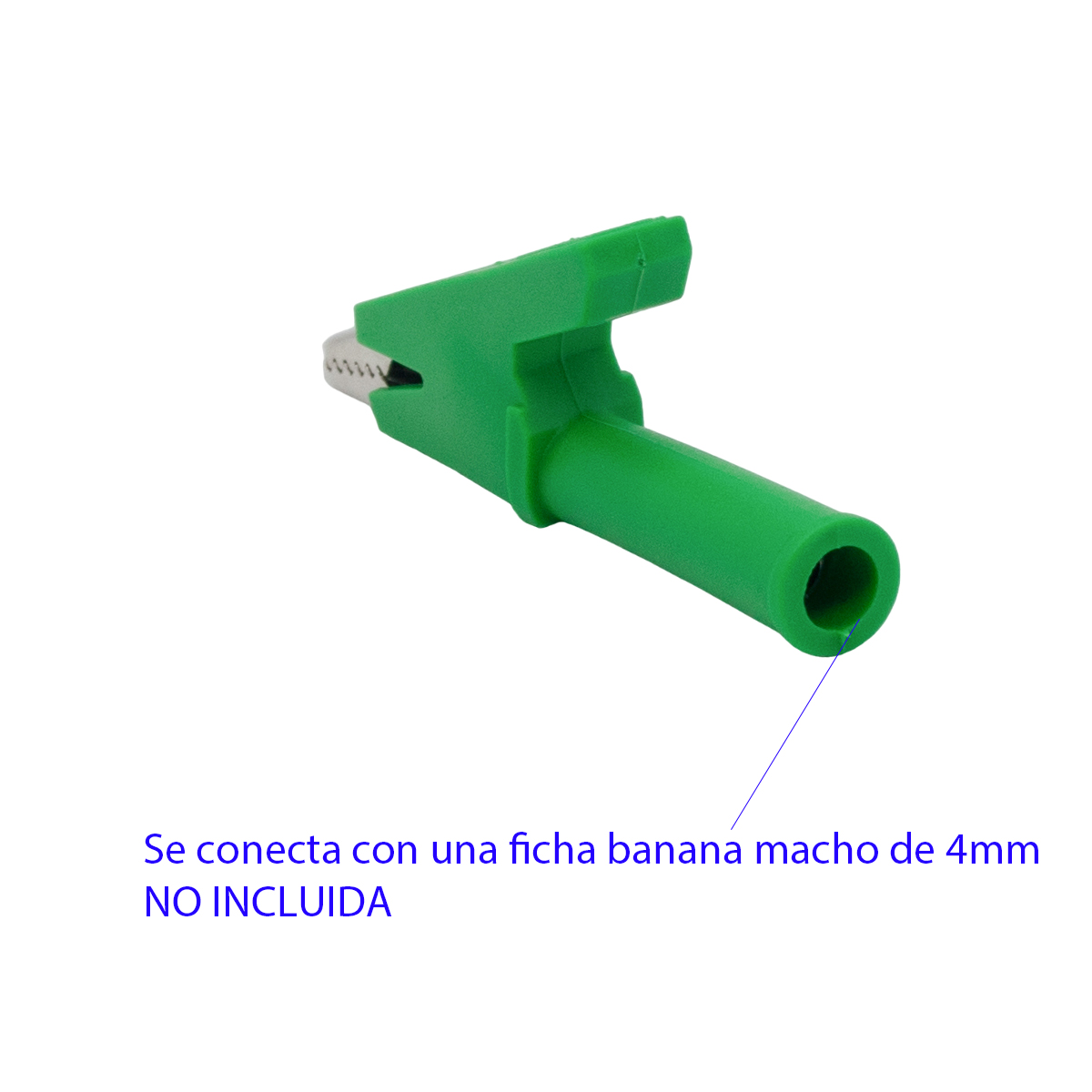 (COCO-55-V) Pinza Cocodrilo Aislada 55mm Verde Coneccion Banana Hembra 4mm