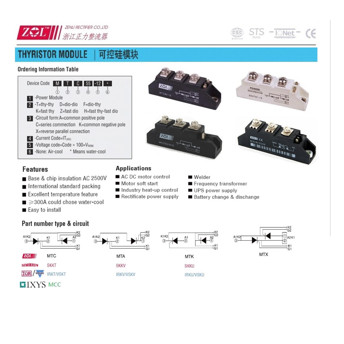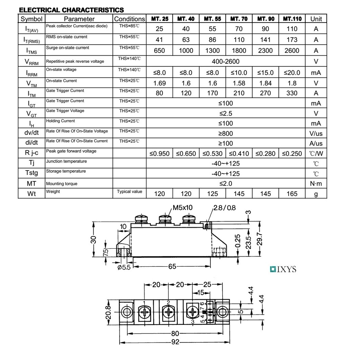 (MTC70-12) Semi-Pack TIRISTOR-TIRISTOR 70A 1200V