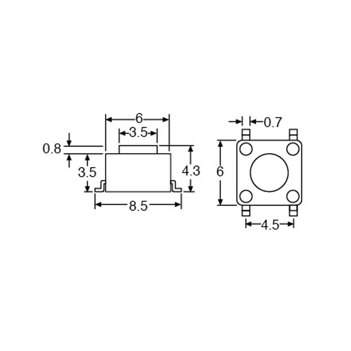 (TS-SMD4.3) PULSADOR TACT SWITCH 4 Pines 6x6x4.3 mm SMD