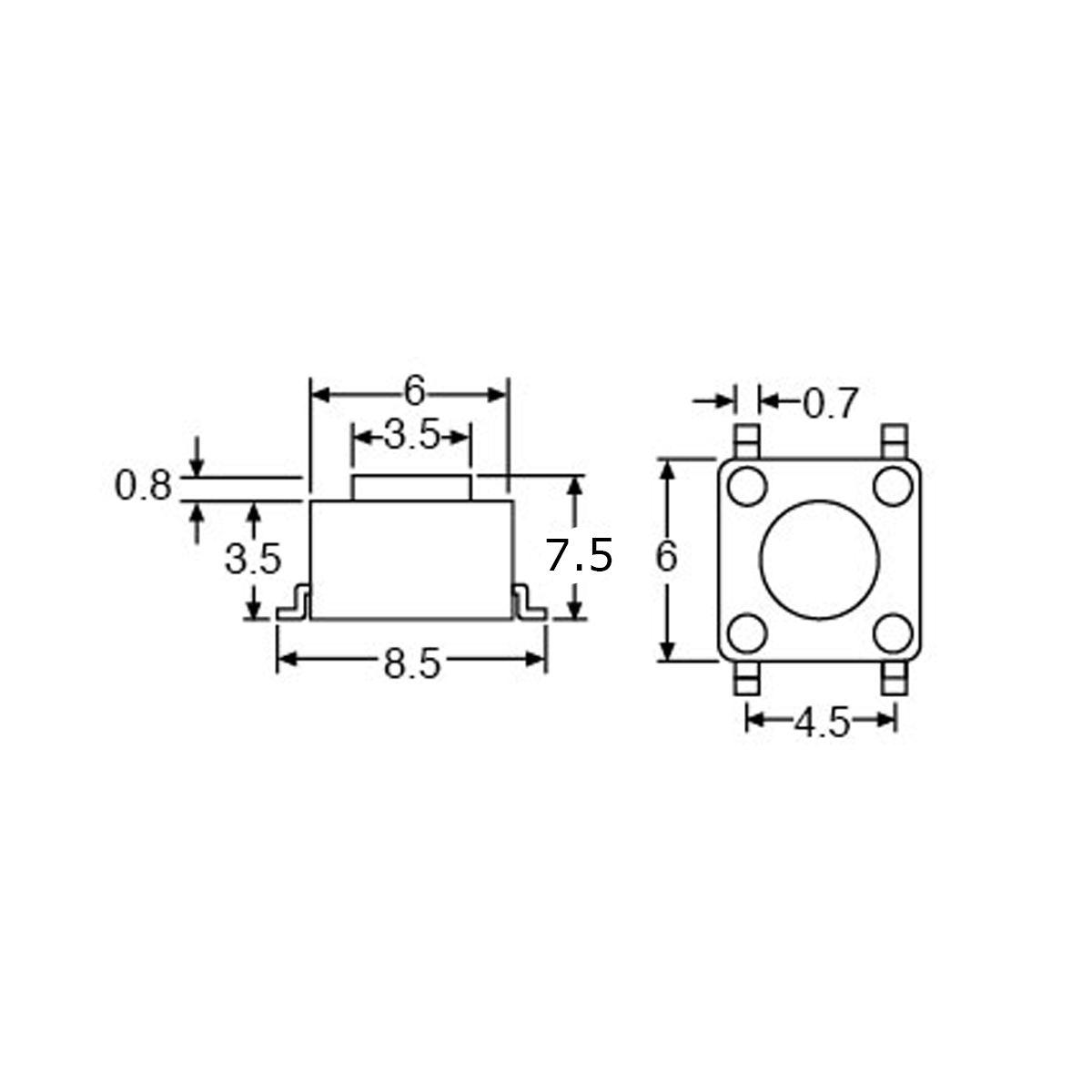 (TS-SMD7.5) PULSADOR TACT SWITCH 4 Pines 6x6x7.5 mm SMD