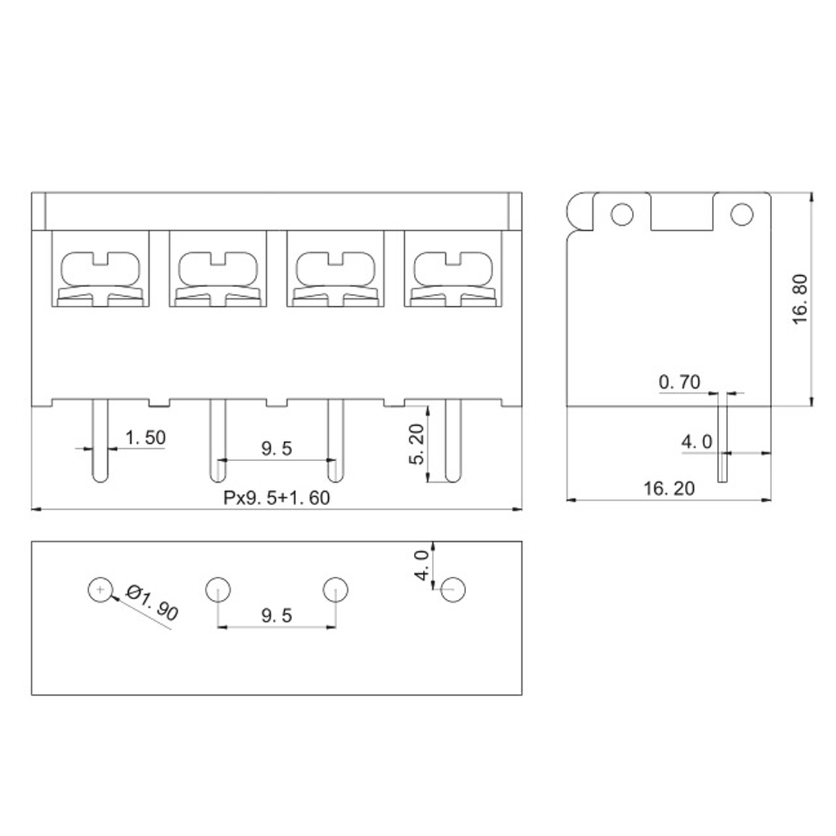 (BCT-9.5-9P) Bornera a Tornillos con Tapa 9 Polos 30A Paso 9.5mm