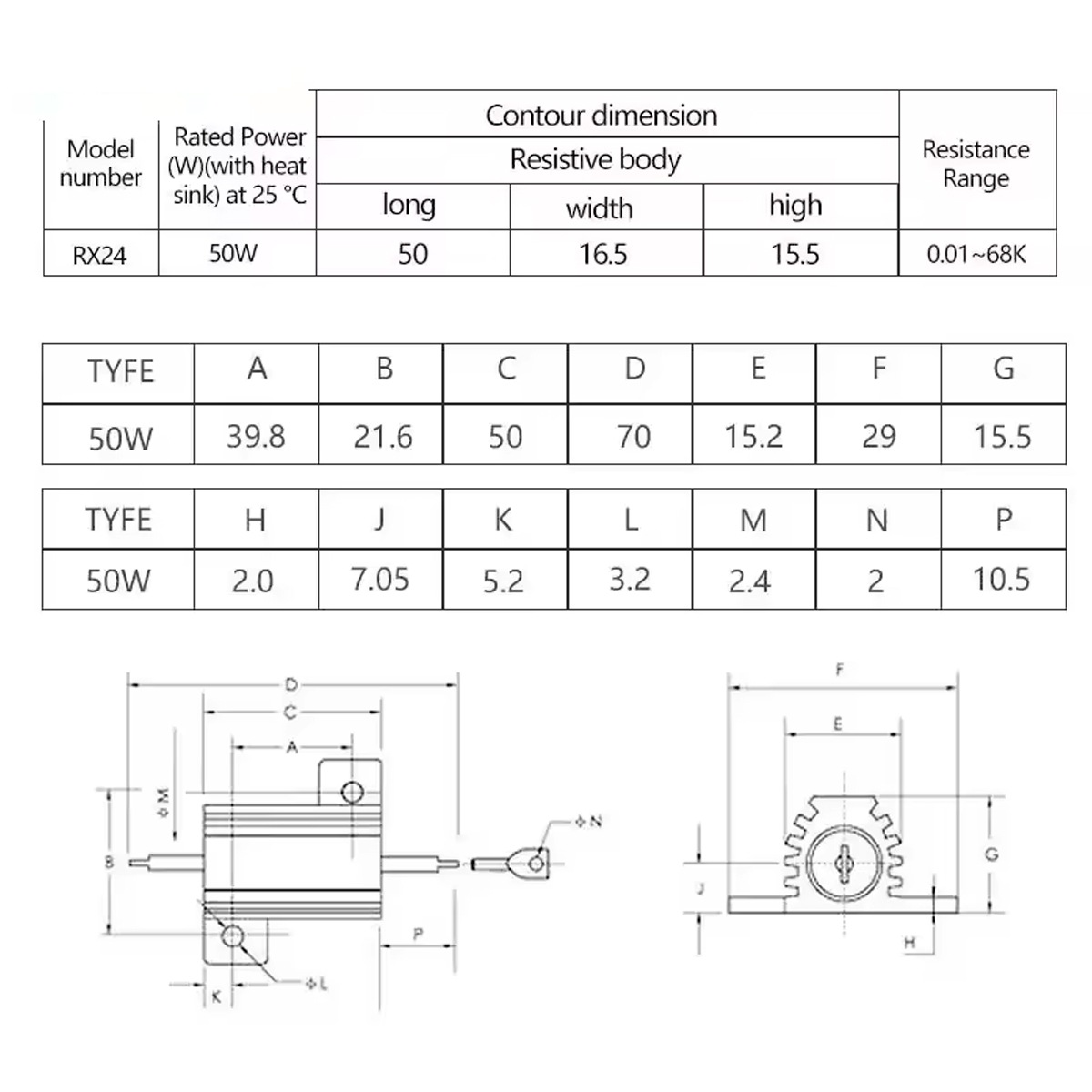 (RX24-50W-7E5) Resistencia Potencia RX24 50W 7.5 Ohms Disipador de Aluminio
